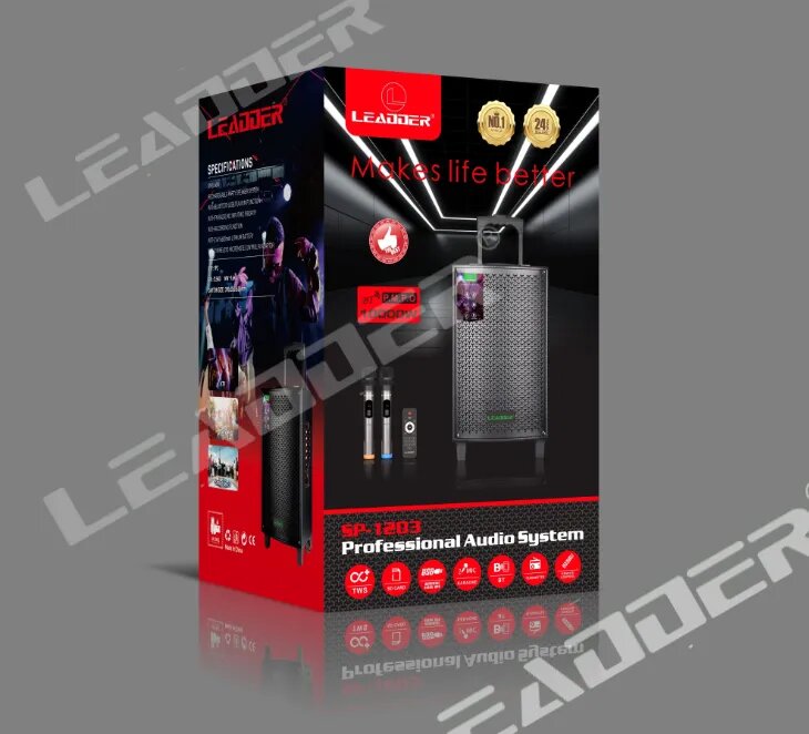 Découvrez l'enceinte portable Leader, idéale pour les événements intérieurs et extérieurs. Dotée d'une sonorité de qualité professionnelle, elle est équipée de roues pour un transport facile. Profitez de vos musiques préférées partout grâce à sa batterie longue durée et connectivité étendue.