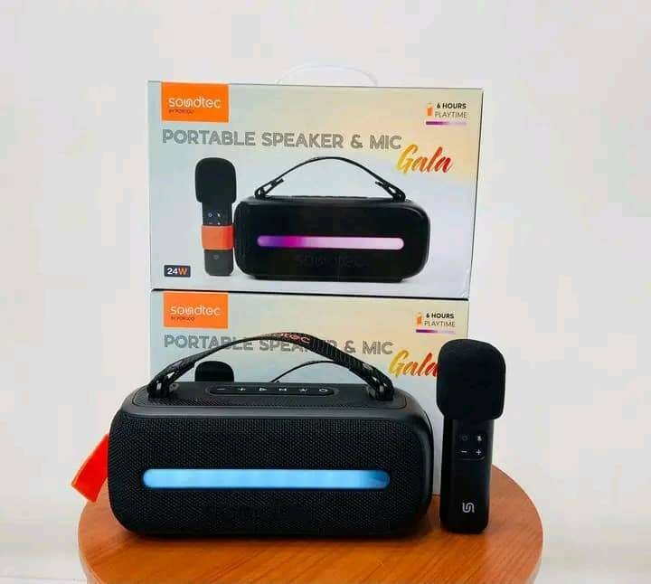 Découvrez l'enceinte portable Soundtec avec micro, idéale pour vos soirées et présentations. Profitez d'un son puissant et de lumières LED captivantes. Facile à transporter, elle est parfaite pour des utilisations en intérieur et extérieur. Avec ses 4 heures d'autonomie, elle garantira de longues sessions sans interruption. Idéale pour les fêtes, les conférences ou le karaoké.