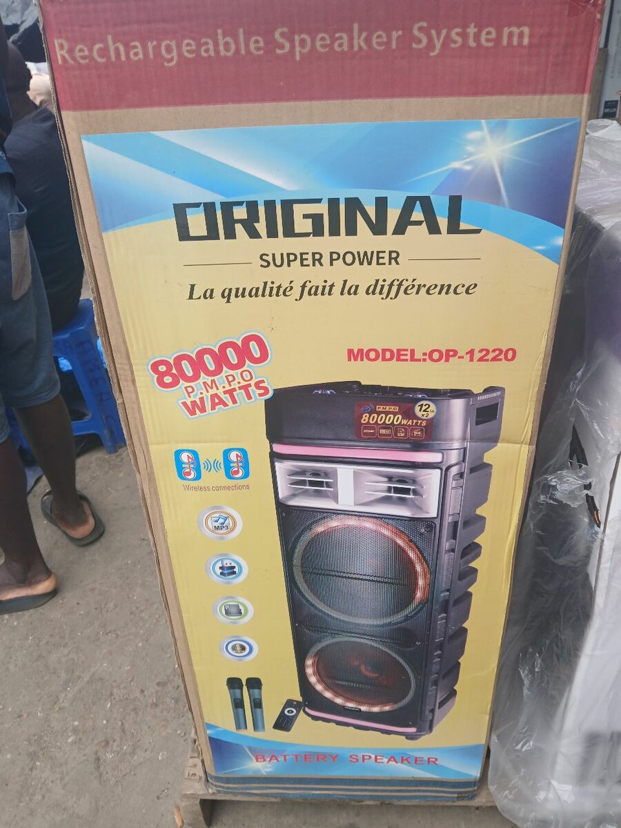 Découvrez notre enceinte rechargeable modèle OP-1220 avec 80,000 PMP Watts de puissance pour un son incroyable. Parfaite pour vos fêtes et événements, avec des basses profondes et une qualité sonore incomparable. Ne ratez pas l’opportunité d'amplifier vos moments spéciaux!