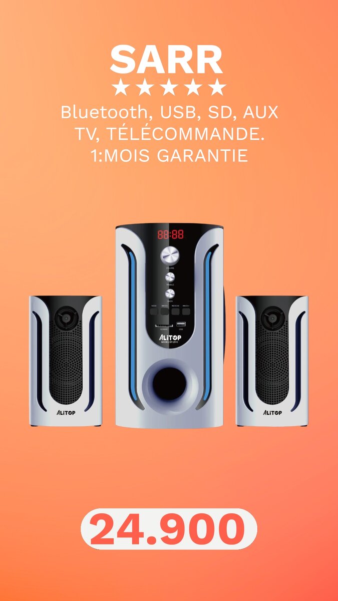 Profitez d'une expérience sonore immersive avec ces enceintes Bluetooth dotées de ports USB et SD. Idéales pour connecter à votre TV ou autres appareils via AUX. Télécommande incluse pour un contrôle facile. Garantie de 1 mois.
