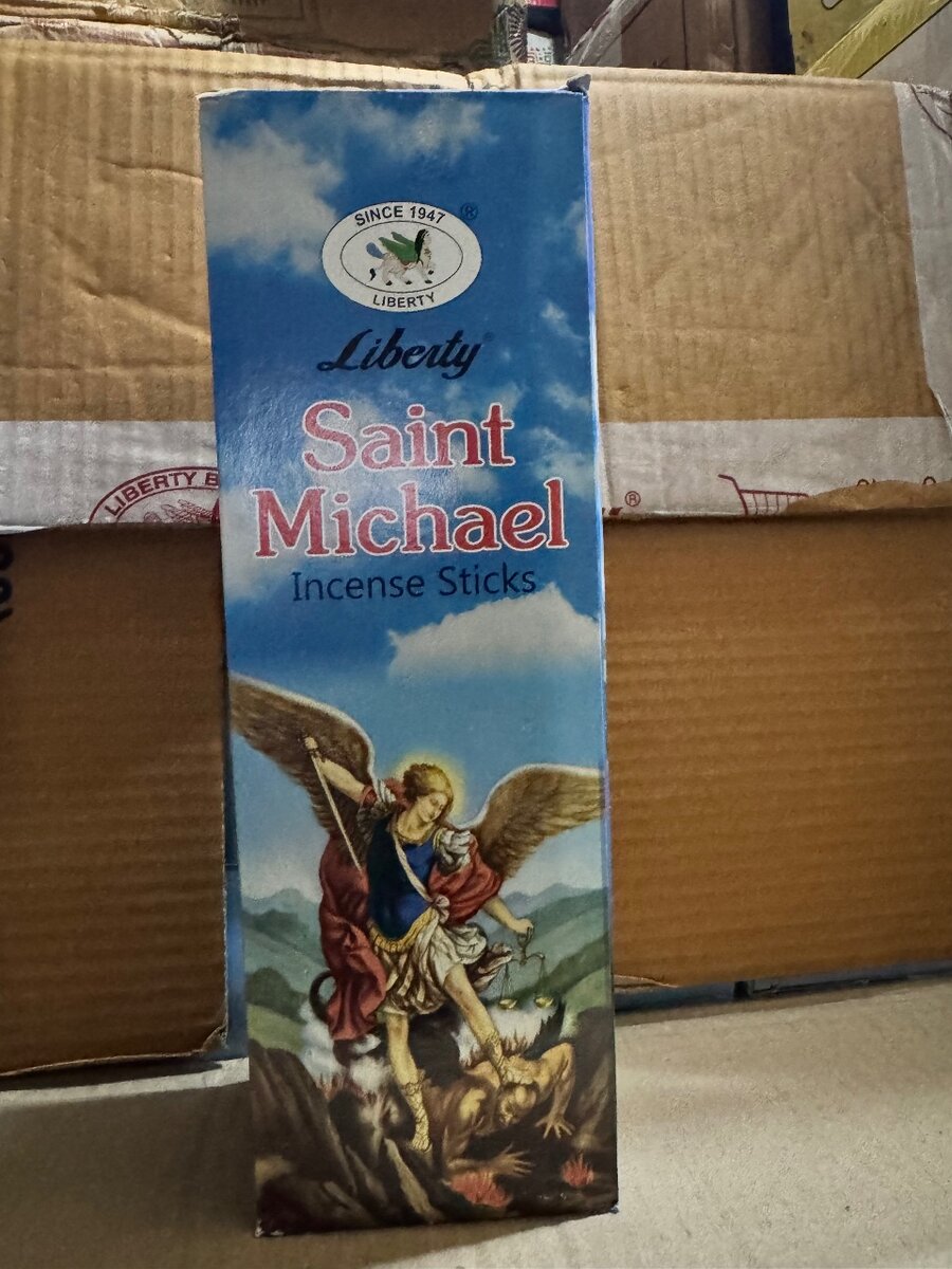 Découvrez un parfum apaisant avec les bâtonnets d'encens Saint Michael par Liberty. Idéals pour la méditation et la relaxation combat spirituellement.