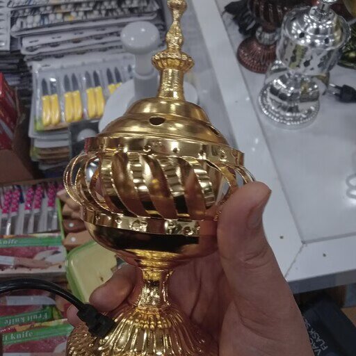 Apportez une ambiance chaleureuse avec cet encensoir électrique doré. Idéal pour la maison, il diffuse vos parfums préférés facilement. Design élégant et usage simplifié pour des moments de détente assurés.