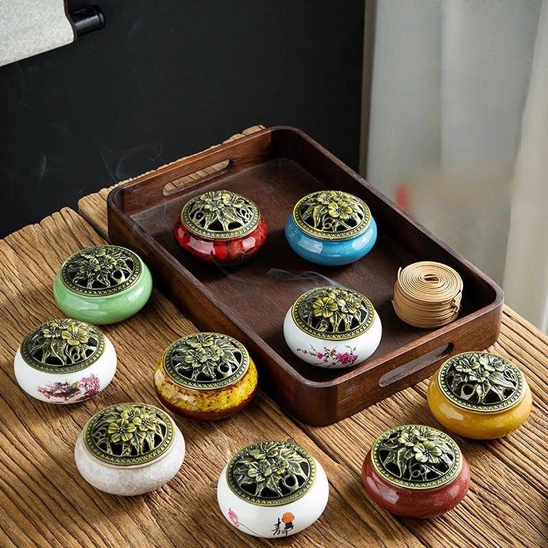 Élevez votre espace avec cet encensoir en céramique élégant. Son design complexe et ses couleurs vibrantes ajoutent une touche de sophistication. Idéal pour les rituels de relaxation, il diffuse un parfum apaisant. Parfait pour la maison ou le bureau. Transforme l'ambiance instantanément.