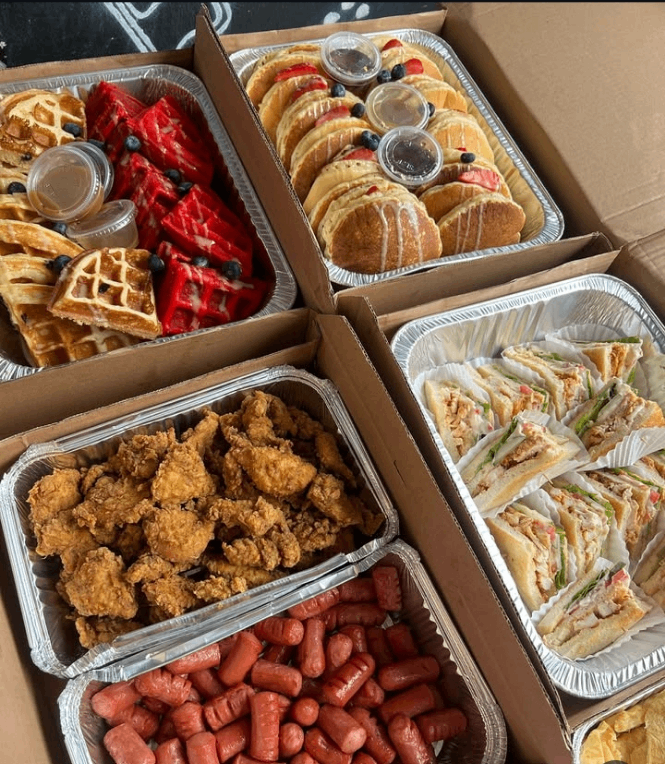 Package Waffle Pancakes Scramble eggs Sausage Chicken Maple syrup Fruit Club Sandwiches