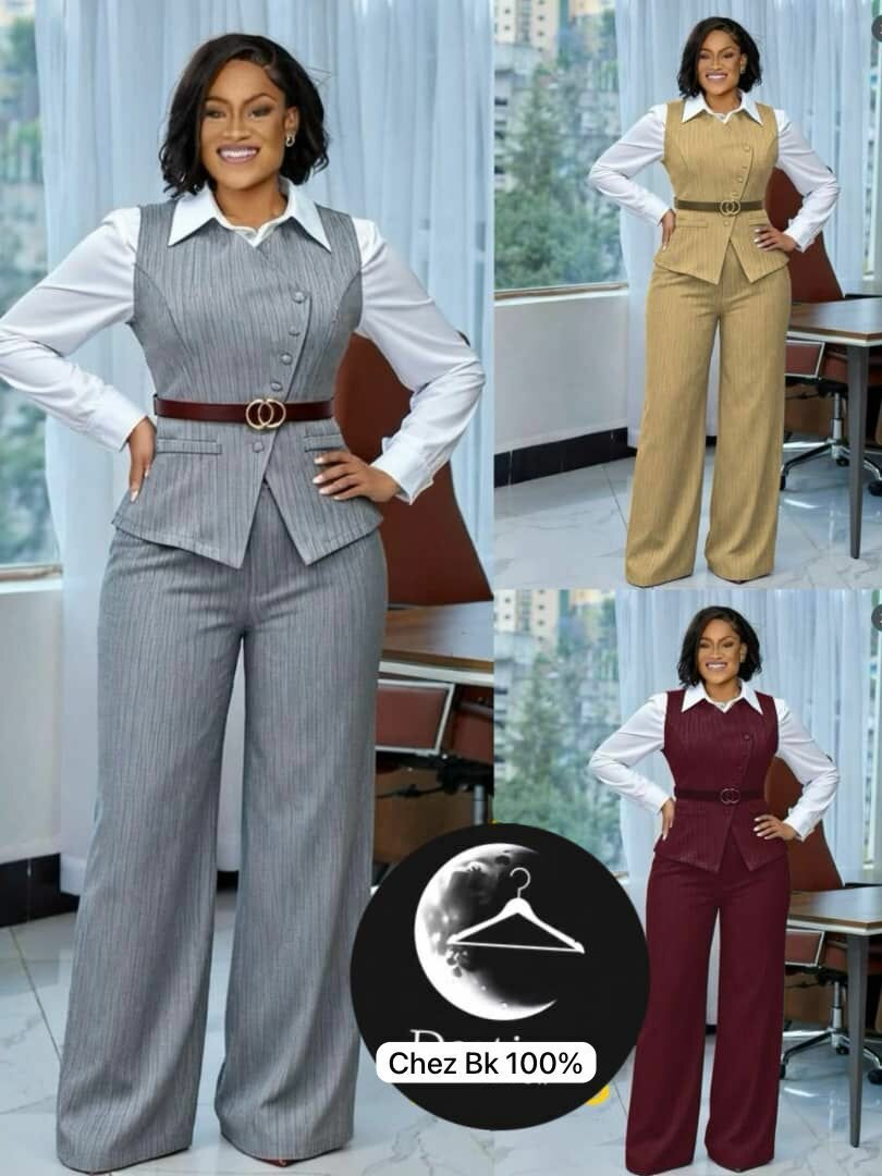 Complet pantalon chic et élégante pour femme. Confortable et tendance, idéale pour le travail ou les occasions spéciales. Disponible en plusieurs couleurs.