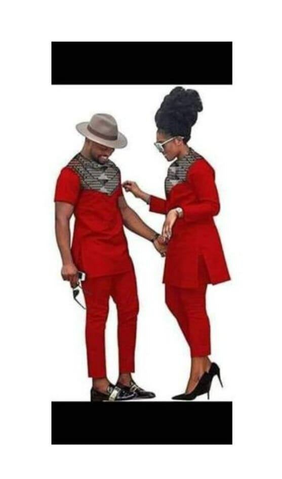 Élégant ensemble rouge pour couples, parfait pour les événements spéciaux. Conçu avec des motifs sur le torse, il allie style et élégance.
