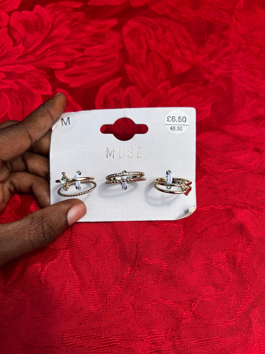 Élégant ensemble de bagues dorées avec détails délicats. Idéal pour apporter une touche de glamour à vos tenues quotidiennes. Taille moyenne, parfait pour un port confortable au quotidien ou lors d'occasions spéciales.