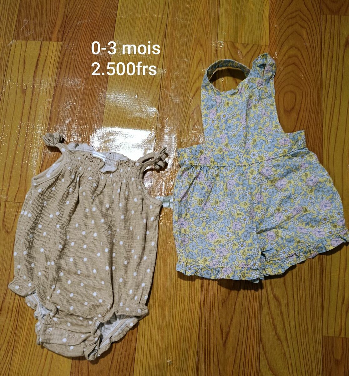 Adorables barboteuses pour bébé fille, taille 0-3 mois, idéales pour l'été. Fabriquées en coton doux, parfaites pour un confort optimal. Choix parfait pour les journées ensoleillées!