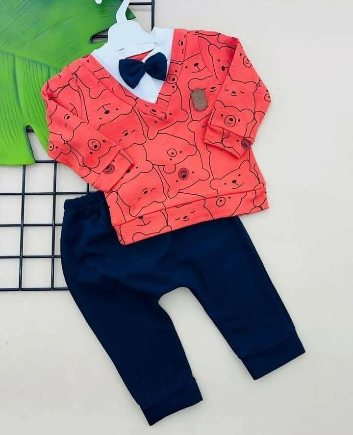 Adorable ensemble pour bébé avec motif animal. Comprend un haut à motifs avec nœud papillon et un pantalon confortable. Idéal pour les occasions spéciales ou les sorties quotidiennes. Doux et confortable pour la peau sensible des bébés. Faites de votre petit une star avec ce charmant ensemble.