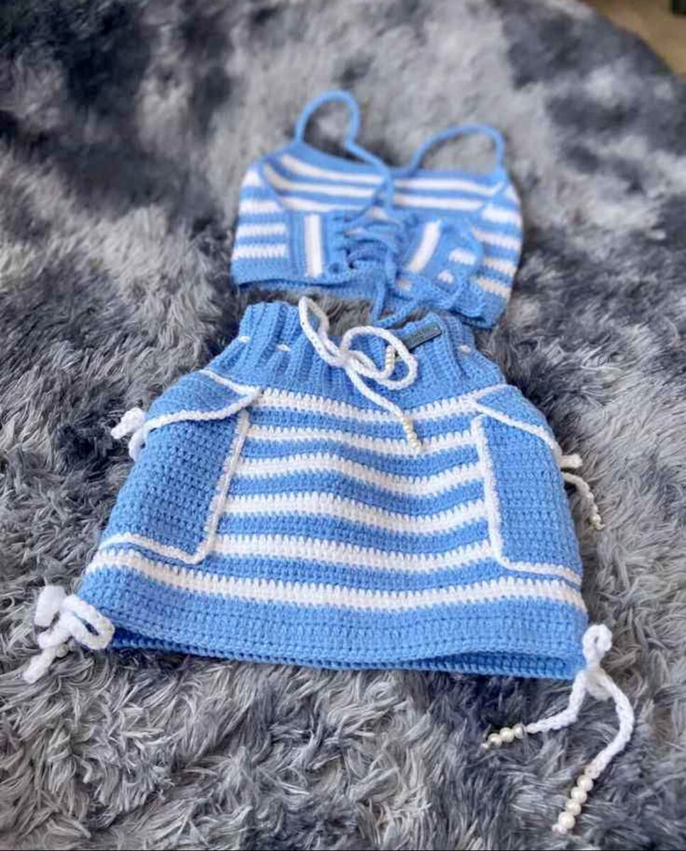 Ensemble bébé en tricot pour fille. Confortable et élégant, idéal pour les premiers mois.