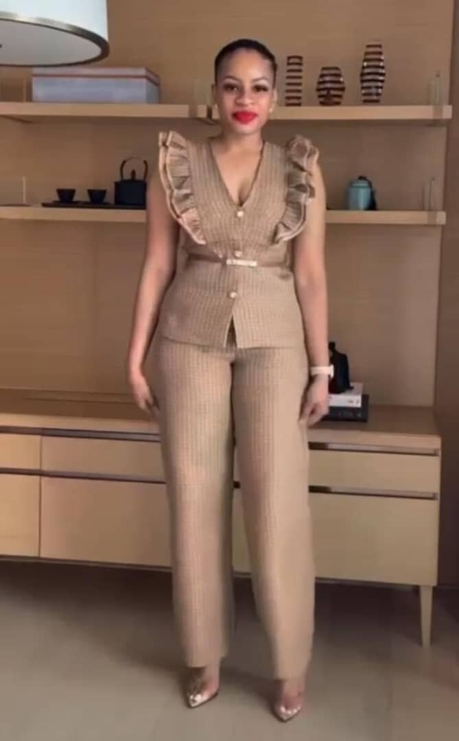 Explorez ce magnifique ensemble beige pour femmes, combinant un haut à volants et un pantalon élégant. Parfait pour des occasions formelles ou des sorties sophistiquées, ce vêtement est conçu pour offrir confort et style. Polyvalent et chic, il est un choix idéal pour celles qui cherchent à se démarquer avec élégance.