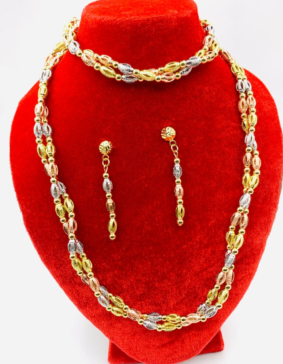 Ensemble élégant de bijoux comprenant un collier chaîne et des boucles d'oreilles. Conçu pour les femmes, cet ensemble est idéal pour compléter vos tenues de soirée ou pour des occasions spéciales.