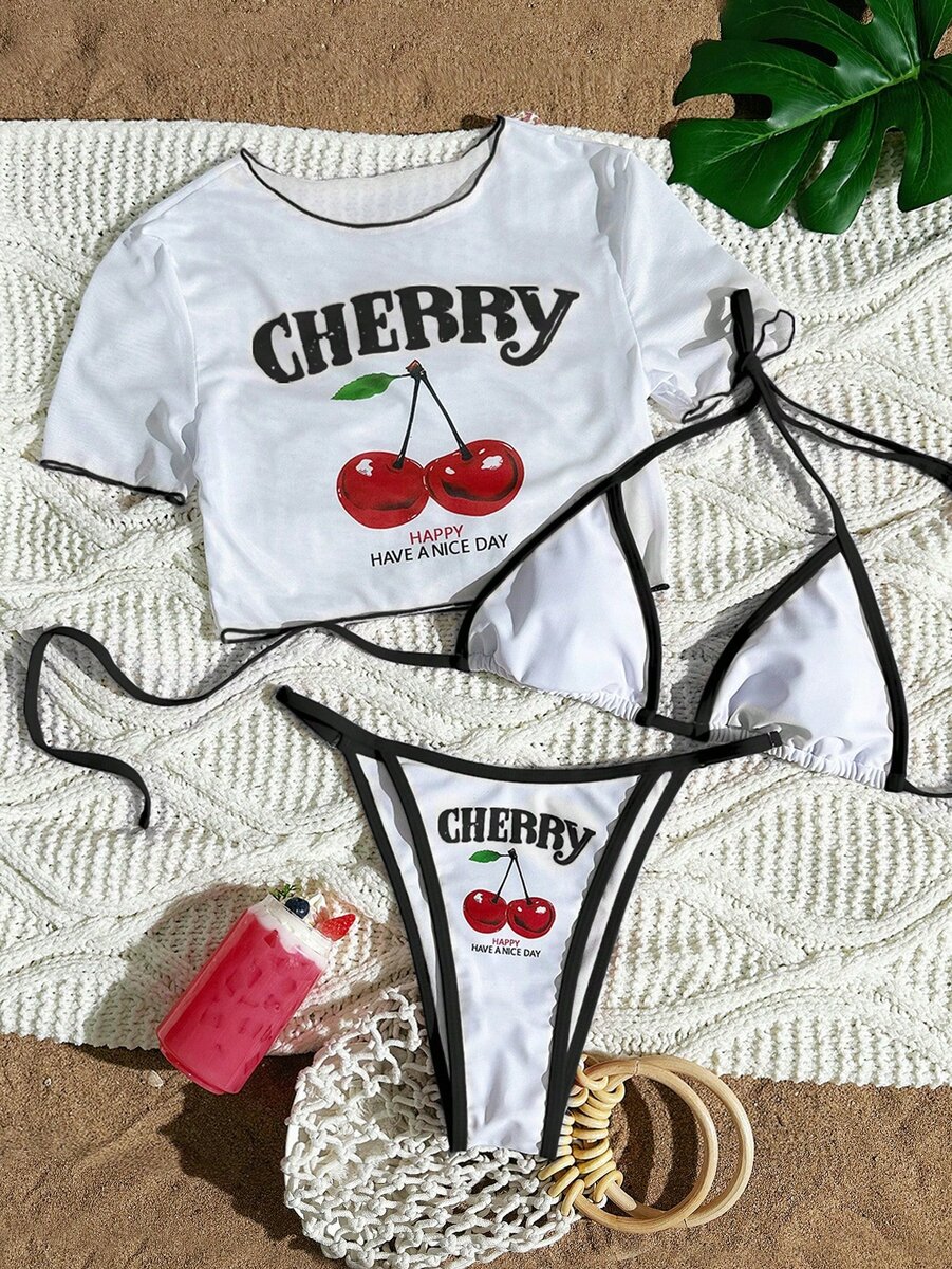 Élégant et tendance, cet ensemble bikini Cherry est parfait pour vos journées à la plage. Avec son imprimé cerise audacieux, il ajoute une touche de fraîcheur et de style. Comprend un haut à manches courtes et un bas triant, offrant à la fois confort et allure. Idéal pour les jeunes femmes à la recherche d'un look unique et accrocheur. Exprimez votre personnalité avec cet incontournable de plage.