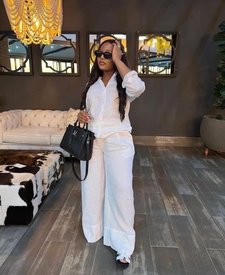 Découvrez le confort chic de cet ensemble blanc en lin, parfait pour l'été. Respirant et élégant, il convient aussi bien pour une sortie décontractée que pour une journée à la plage. Un choix idéal pour ceux qui recherchent le style et le confort.