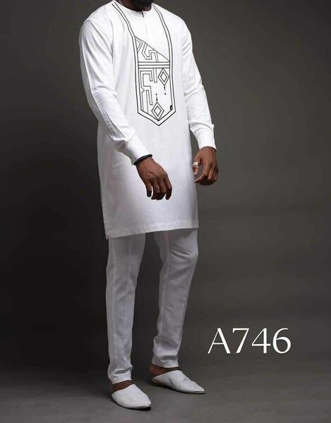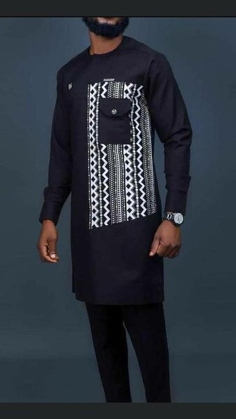Découvrez cet élégant ensemble pour homme en bleu, parfait pour les occasions spéciales. Confortable et chic, il se distingue par ses motifs géométriques raffinés. Idéal pour les célébrations et événements culturels.
