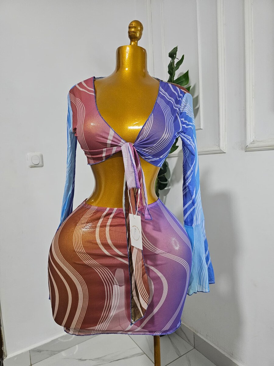 Découvrez cet ensemble moulant au design bohème chic, Les manches longues et le nœud frontal ajoutent une touche d'originalité. Idéale pour celles qui veulent se démarquer.
