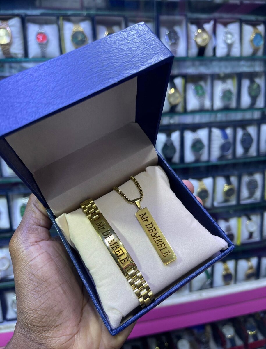 Découvrez cet élégant ensemble de bijoux personnalisés comprenant un bracelet et un collier avec gravures raffinées, parfait pour offrir ou se faire plaisir. Fabriqués avec des matériaux de haute qualité, ces accessoires apporteront une touche d'élégance à votre tenue. Idéal pour un look distingué au quotidien ou lors d'occasions spéciales.