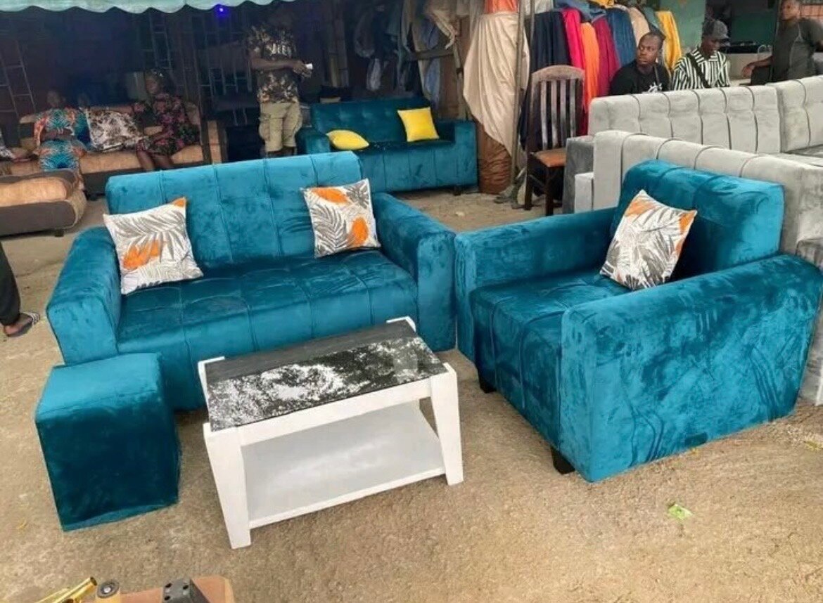 Ensemble canapé et fauteuil bleu sarcelle