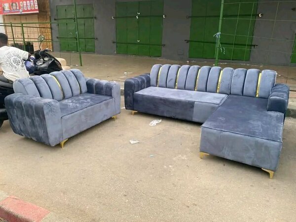 Transformez votre salon avec cet élégant ensemble canapé et fauteuils bleus, doté de coussins jaunes vifs pour un contraste moderne. Confort et style garantis pour toutes vos réceptions.