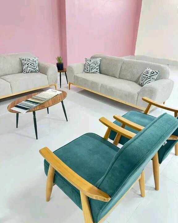 Transformez votre salon avec cet ensemble canapé moderne. Comprend un canapé confortable et des fauteuils élégants aux finitions en bois naturel. Idéal pour un intérieur chic et accueillant. Fabriqué avec des matériaux de haute qualité pour un confort durable. Parfait pour les réunions en famille ou entre amis.