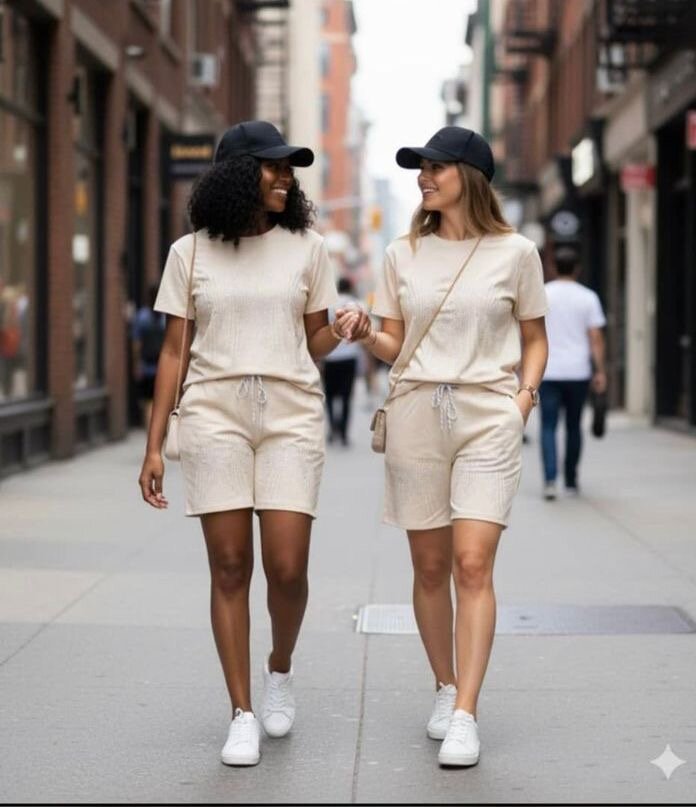 Profitez d'un ensemble décontracté et élégant, parfait pour une balade en ville ou un moment de détente. En coton doux, il offre confort et style tout au long de la journée. Idéal pour les sorties décontractées.
