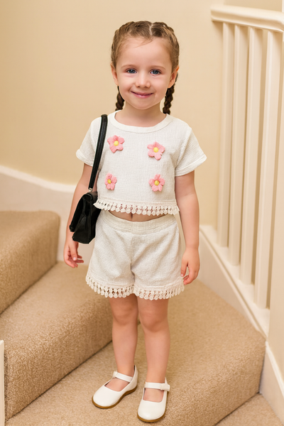 Cet ensemble adorable pour fille comprend un haut à motifs amusants et un bas en tissu doux, idéal pour un style tendance et confortable. Parfait pour des occasions décontractées ou des sorties spéciales, il combine mode et confort pour votre petite princesse.