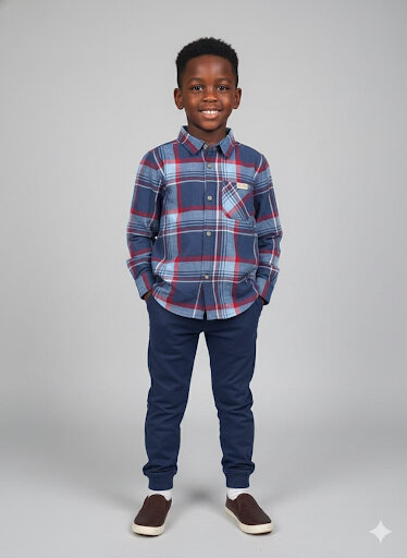 Chemise enfant à carreaux bleus et rouges, parfaite pour un style décontracté. Conception en coton doux pour un confort optimal. Idéale pour l'école ou les sorties.