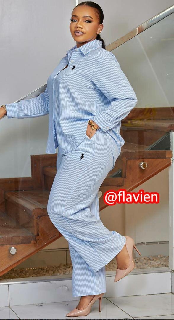 Découvrez cet élégant ensemble chemise et pantalon bleu, parfait pour une allure chic et décontractée. Idéal pour un usage quotidien ou pour des occasions spéciales, cet ensemble vous assure confort et style. Portez-le avec des talons pour un look raffiné et attrayant.