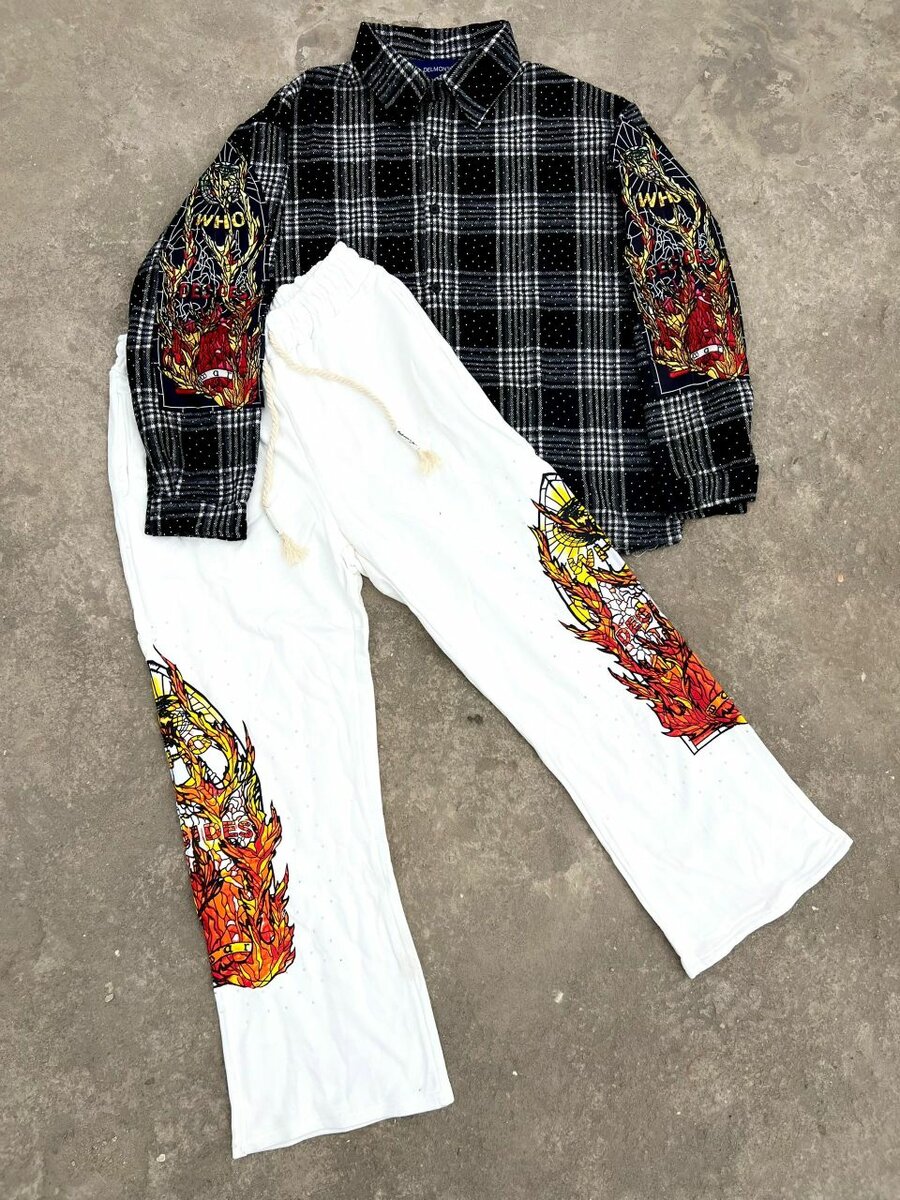 Optez pour cet ensemble chemise et pantalon au design graffiti flamboyant. Parfait pour les amateurs de style urbain plein de caractère. Avec ses détails imprimés vibrants, ce set apporte une touche artistique et décontractée à votre garde-robe. Idéal pour les sorties entre amis ou ajouter un peu de fun aux journées ordinaires. Confort exceptionnel et look audacieux garantis!