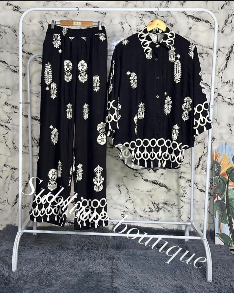 Optez pour cet ensemble élégant et confortable avec chemise et pantalon assortis. Parfait pour un look unique, cet ensemble à imprimé audacieux est idéal pour toutes les occasions décontractées. Style et confort en un!