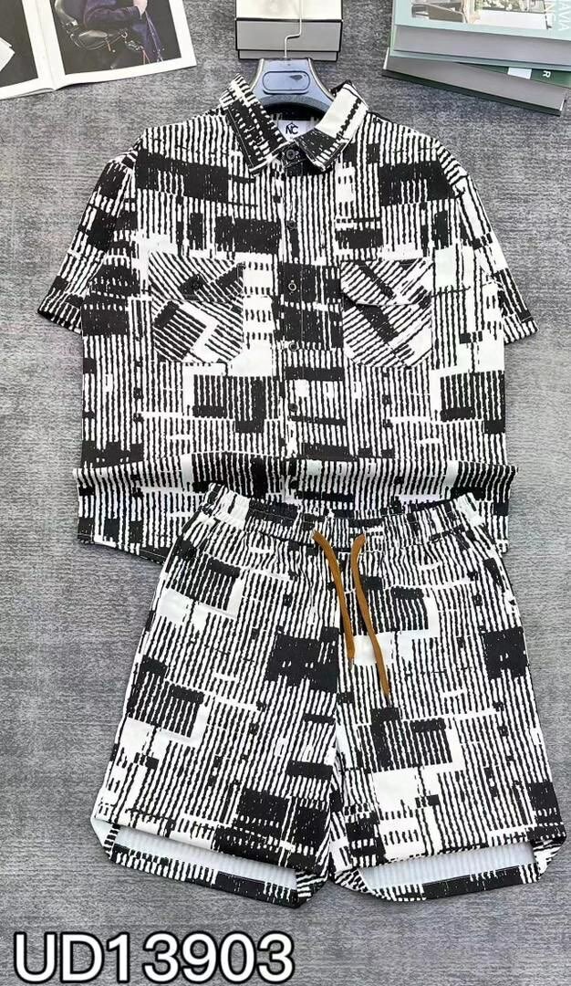 Soyez tendance avec cet ensemble chemise et short pour homme. Motifs modernes en noir et blanc, idéal pour l'été. Parfait pour une soirée décontractée ou une sortie estivale.