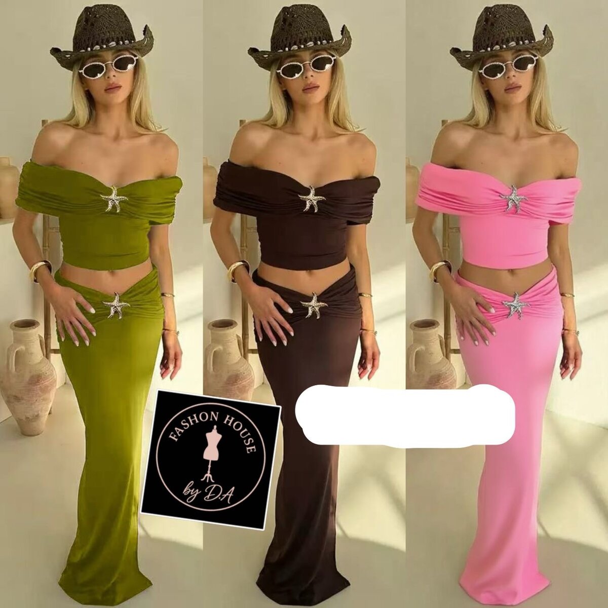 Sublimez votre garde-robe avec cette ensemble élégante, idéale pour les soirées ou une sortie en été. Disponible en plusieurs couleurs vibrantes, elle offre une touche glamour et unique avec sa broche ornée. Le choix parfait pour celles qui veulent se démarquer avec style.