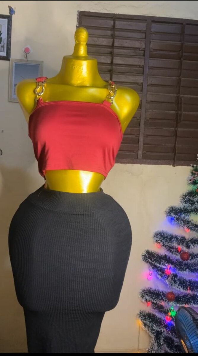 Adoptez un look élégant avec cet ensemble top rouge moderne et jupe crayon noire. Idéal pour une soirée ou un rendez-vous, il souligne la silhouette avec style. Fabriqué dans des matériaux confortables, c’est un must-have pour toute garde-robe trendy. Soyez la star de la soirée !