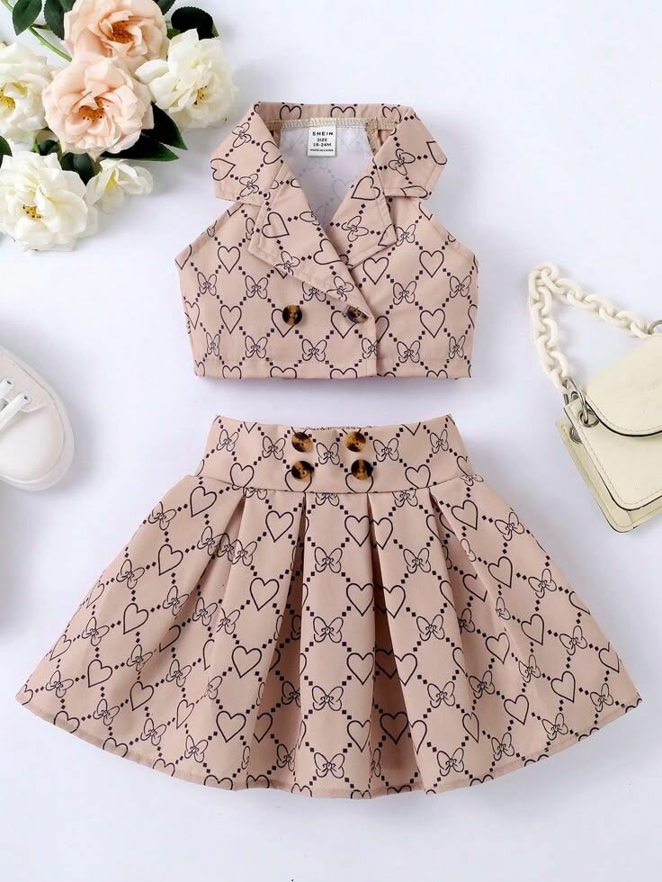 Cet ensemble adorable pour fille est parfait pour toutes les occasions spéciales. Composé d'un haut élégant à col et d'une jupe plissée, il est orné de motifs en cœur charmants. Confectionné avec soin pour garantir confort et style, c'est un choix idéal pour les sorties estivales et les fêtes. Offrez à votre petite le plaisir d'être à la mode!