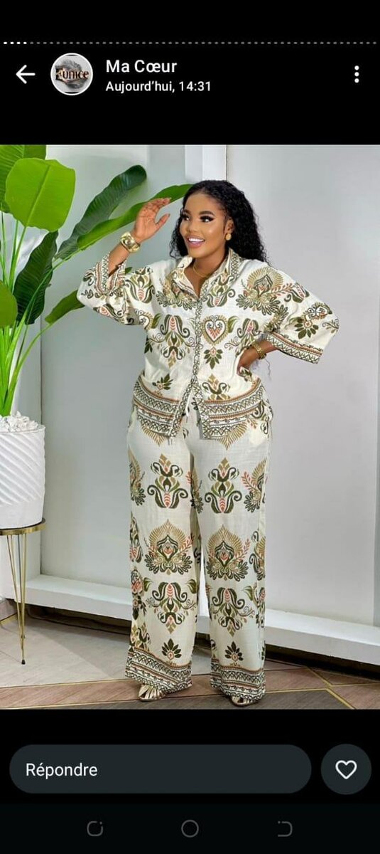 Optez pour cet ensemble élégant et confortable, parfait pour toutes les occasions. Fabriqué à partir de tissus doux, il allie style et confort avec ses motifs artistiques vibrants. Idéal pour un brunch, une sortie entre amis ou une journée décontractée, cet ensemble vous assurera de rester à la mode tout en étant à l'aise. Offrez-vous une touche de sophistication avec cet ensemble tendance!