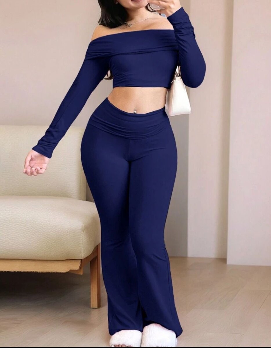 Découvrez cet ensemble tendance avec haut épaules dénudées et pantalon ample. Conçu pour allier confort et style, il est parfait pour les sorties décontractées ou les moments de détente à la maison. Son design élégant et sa coupe flatteuse vous feront vous sentir confiante et sophistiquée. Adoptez ce look pour un impact chic assuré !