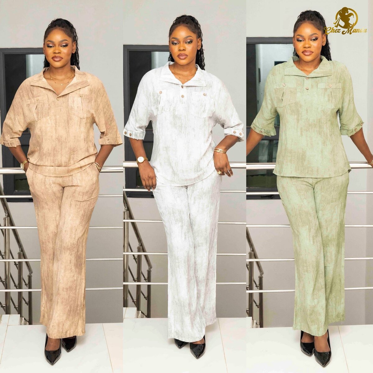 Découvrez cet ensemble élégant composé d'une chemise et d'un pantalon large, parfait pour toutes les occasions. Disponible en plusieurs couleurs.