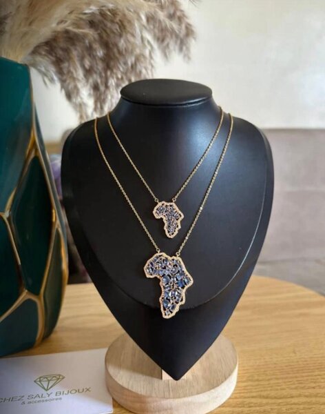 Collier carte Afrique en zircone doré