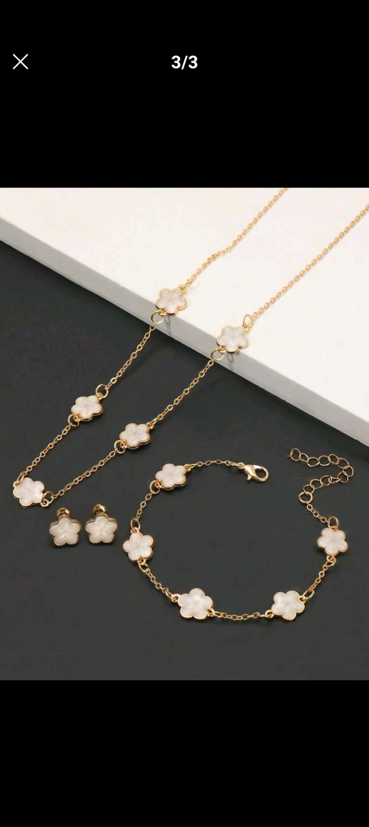 Ajoutez une touche de sophistication avec cet ensemble élégant de collier et bracelet en or, incrusté de motifs floraux délicats. Parfait pour toute occasion spéciale ou comme cadeau élégant.