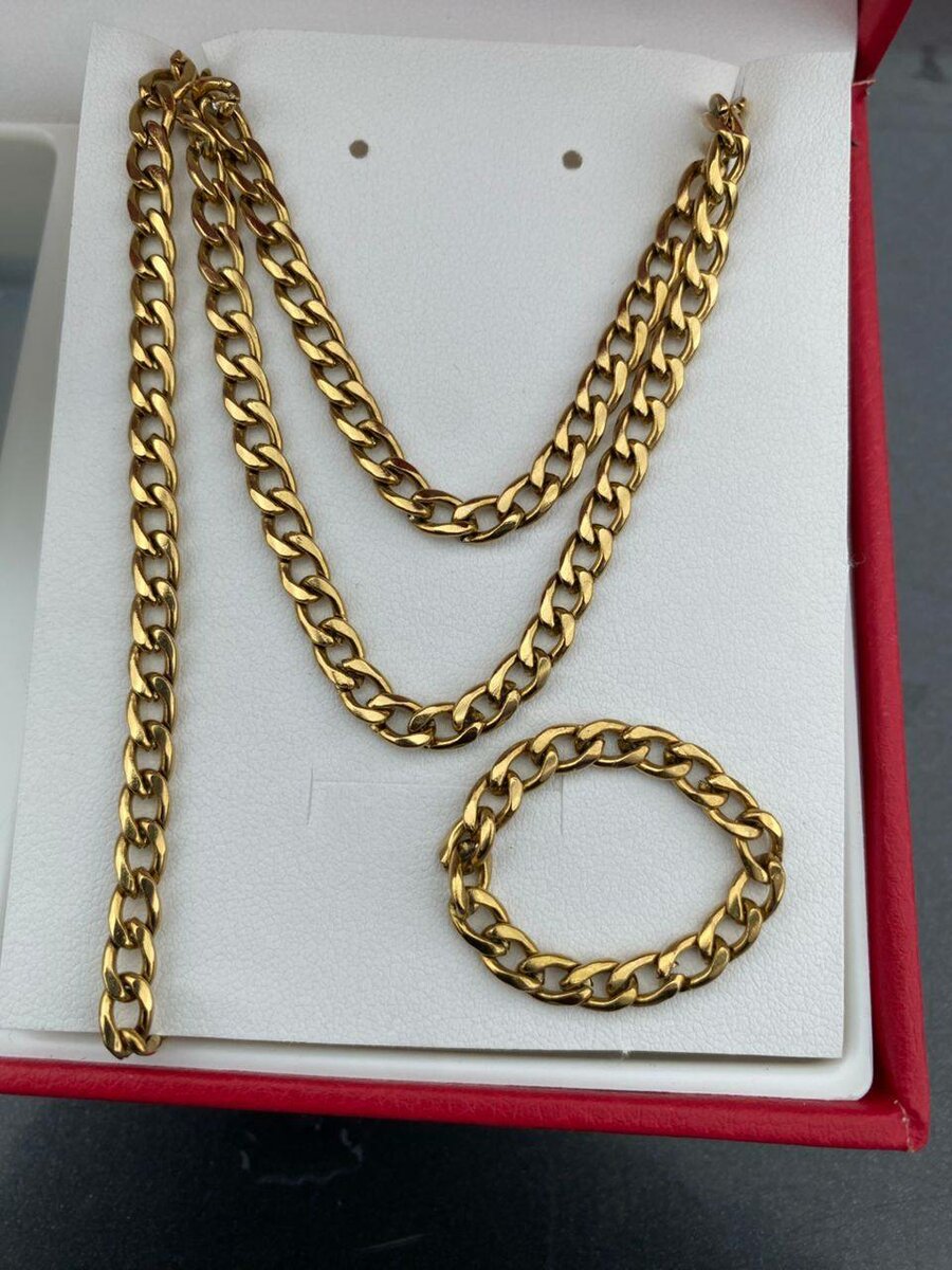 Découvrez cet élégant ensemble collier et bracelet en or. Idéal pour sublimer vos tenues, ce set ajoute une touche de glamour et de sophistication. Parfait pour les occasions spéciales ou pour offrir en cadeau.