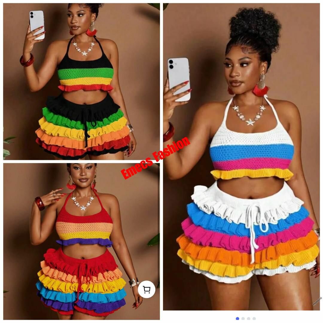 Transformez votre garde-robe estivale avec cet ensemble vibrant et coloré à volants. Parfait pour les journées ensoleillées, ce design séduisant et confortable vous garantira un look élégant et joyeux. Idéal pour une sortie décontractée ou une fête sur la plage. Ne passez pas inaperçue avec ses couleurs éclatantes et sa coupe flatteuse!