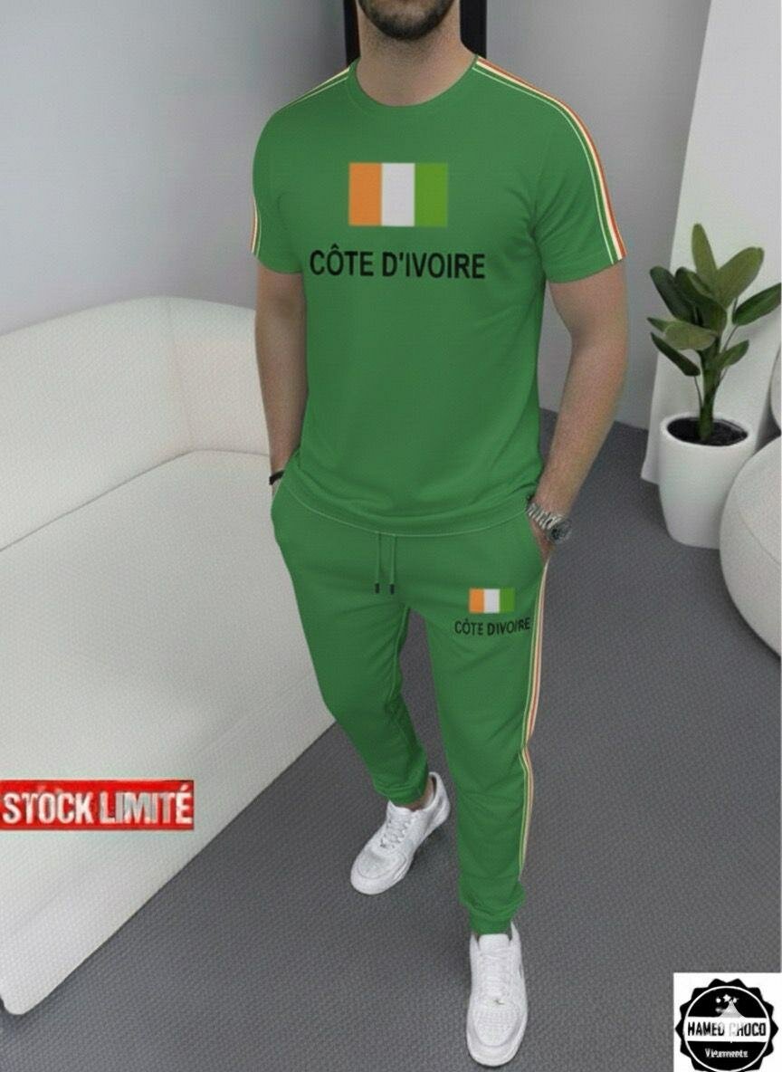 Affichez votre passion avec cet ensemble sportif Côte d'Ivoire. Parfait pour le sport ou une tenue décontractée, fabriqué en matériaux confortables pour une liberté de mouvement optimale. Un design unique pour les fans.