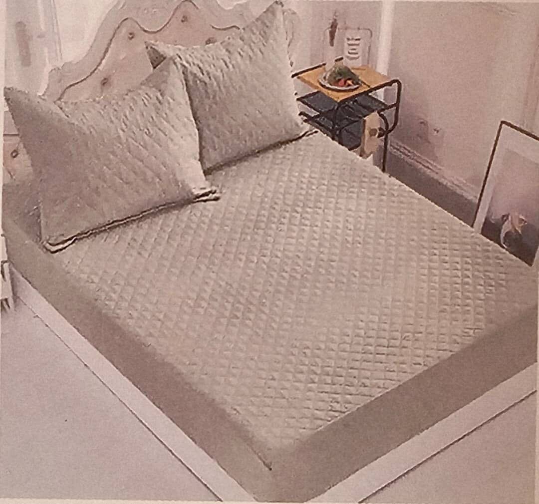 Ajoutez une touche de luxe à votre chambre avec cet ensemble couvre-lit en tissu de haute qualité. Comprend un couvre-lit et deux housses de coussin assorties, parfaits pour une décoration élégante et raffinée.