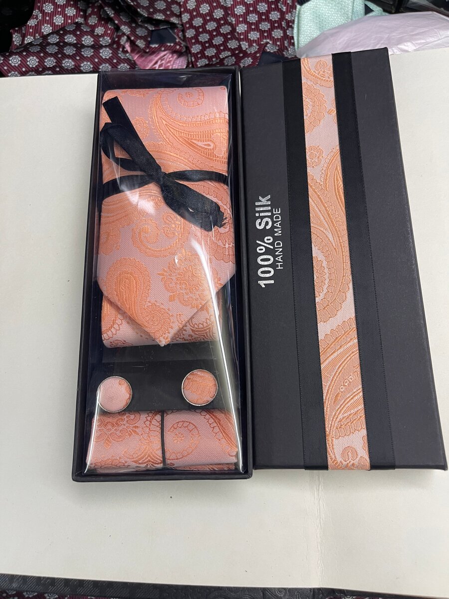 Optez pour l'élégance avec cet ensemble de cravate en soie 100% fait main. Parfait pour les occasions spéciales, cet ensemble comprend une cravate, une pochette et des boutons de manchette assortis. Disponible en plusieurs motifs raffinés, il garantit un style impeccable et sophistiqué. Idéal pour les mariages, les événements professionnels ou les dîners formels.