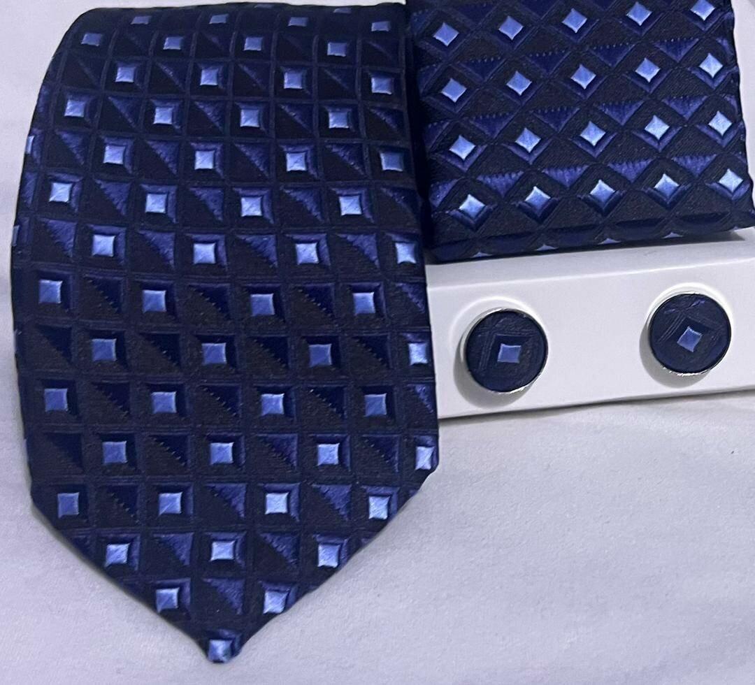 Adoptez un look raffiné avec cet ensemble élégant de cravate, mouchoir et boutons de manchette assortis. Disponible en motifs variés, il est idéal pour les occasions formelles ou pour rehausser une tenue professionnelle. Fabriqué avec des matériaux de qualité, cet ensemble est un choix incontournable pour l'homme moderne. Parfait pour les mariages, réunions d'affaires ou toute autre occasion spéciale.