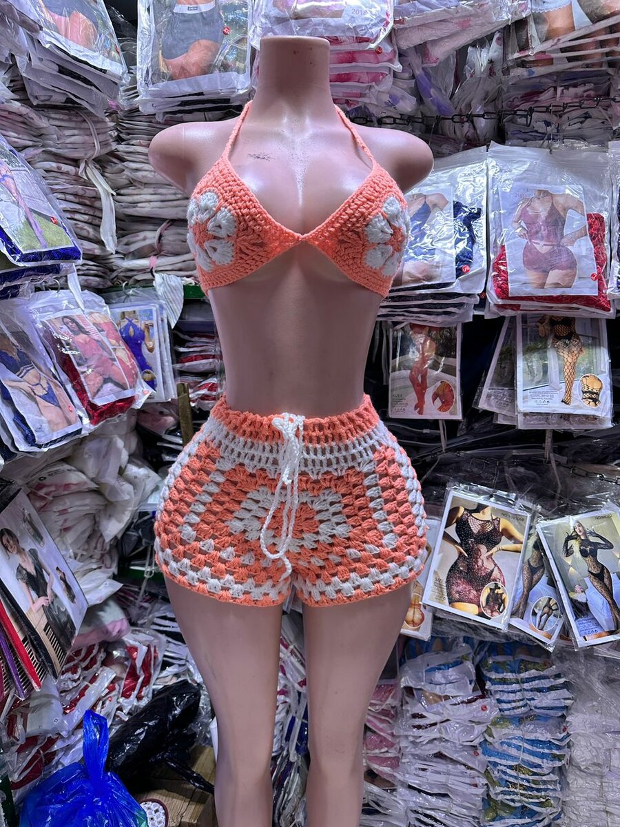 Ensemble crochet bikini et short