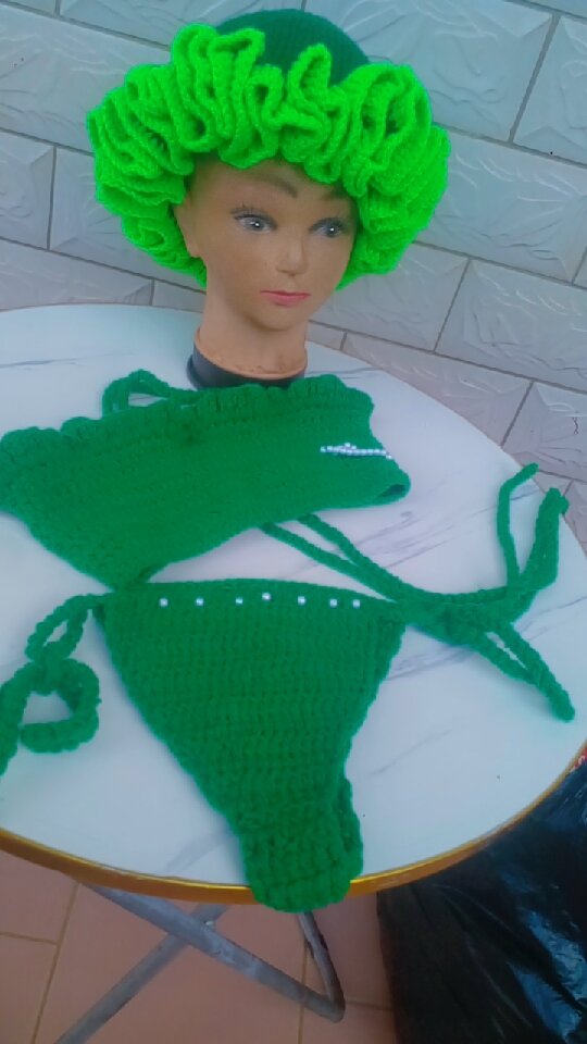 Un bikini crocheté à la main vert éclatant, idéal pour des journées à la plage. Confortable, stylé et unique, cet ensemble est orné de perles délicates qui ajoutent une touche d'élégance. Fabriqué avec des matériaux doux pour la peau, il garantit un ajustement parfait. Un choix audacieux pour celles qui veulent se démarquer. Parfait pour vos vacances ensoleillées ou une piscine chic.