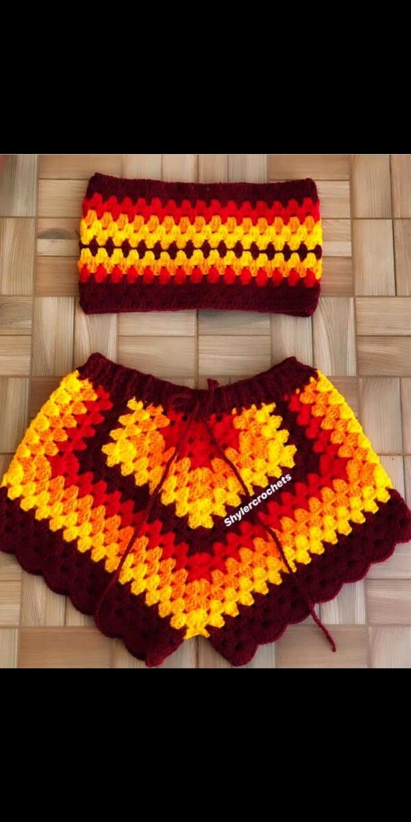 Élégant ensemble crochet top et short. Confort et style pour l'été ou la plage. Parfait pour les amatrices de mode artisanale.