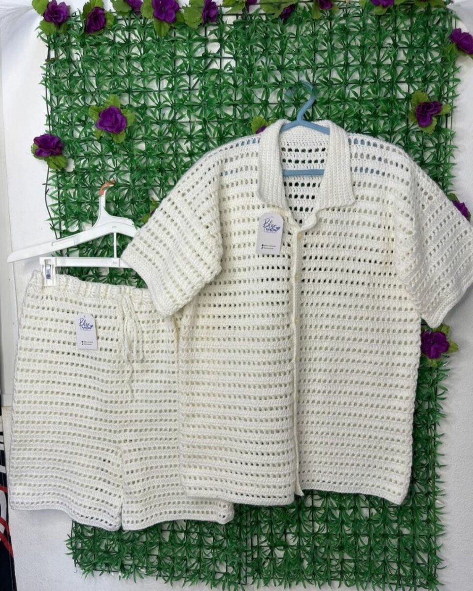Explorez le confort et l'élégance de cet ensemble crocheté en blanc éclatant. Parfait pour les journées d'été, il offre une sensation de légèreté tout en ajoutant du style. Fabriqué à la main pour une touche artisanale unique, cet ensemble est idéal pour une promenade en ville ou un pique-nique entre amis. Adoptez un look tendance et décontracté.