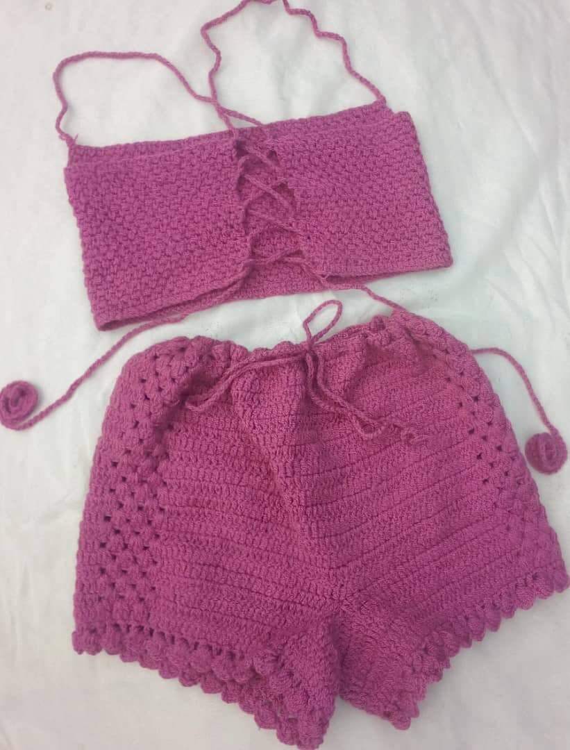 Découvrez notre ensemble crochet femme, idéal pour un style estival décontracté. Fabriqué à la main, cet ensemble comprend un top bustier et un short, offrant confort et élégance. Parfait pour les vacances à la plage ou les sorties estivales.